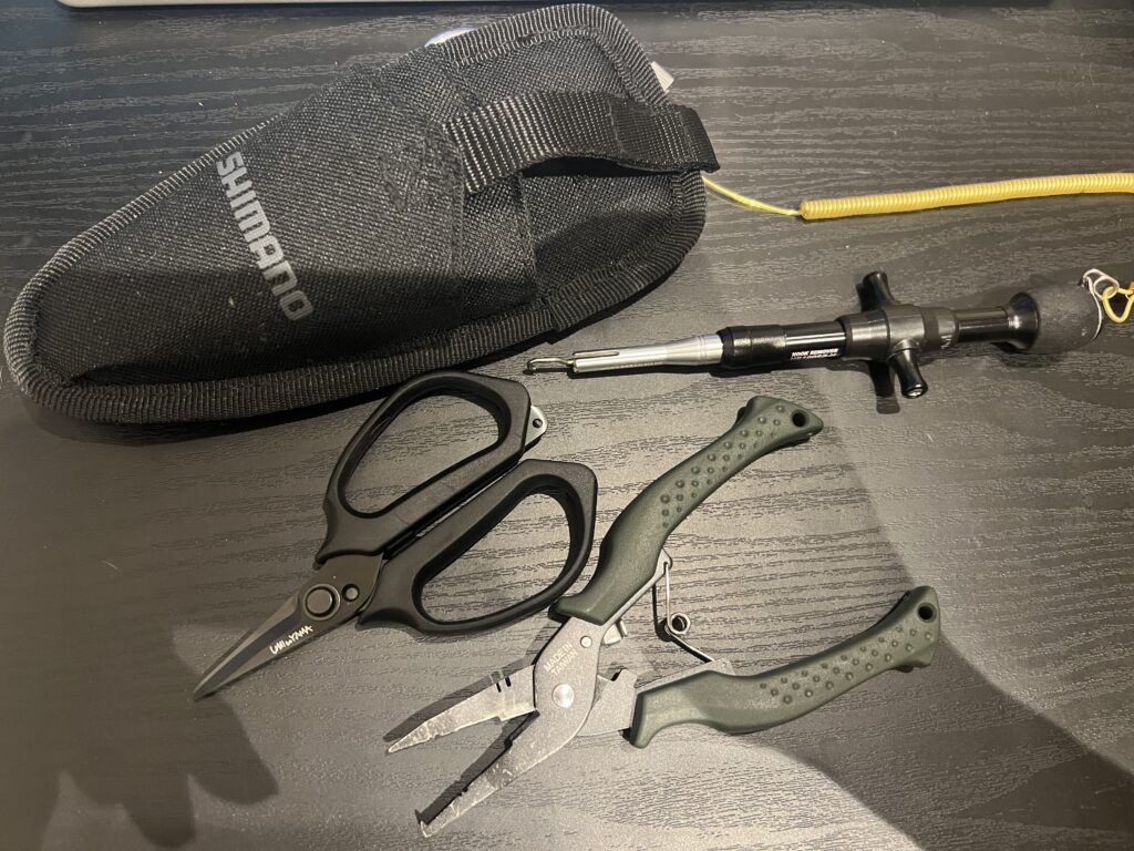 シマノのプライヤーホルダーはハサミとプライヤーの
